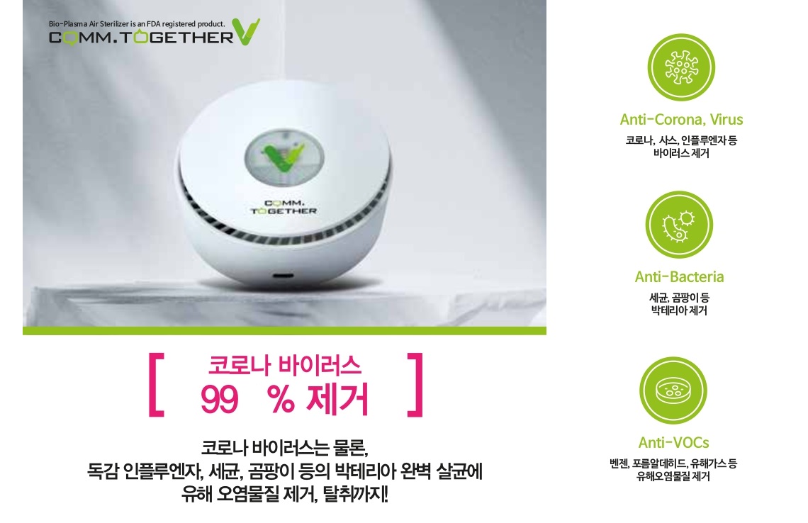FDA등록, 코로나바이러스 99% 제거