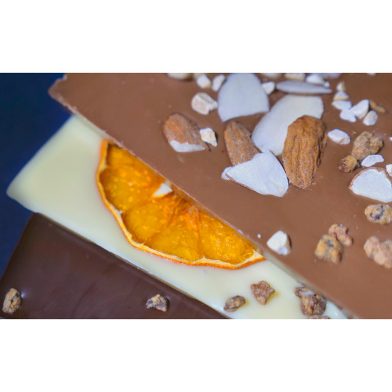 리얼초콜릿에 석창포카카오닙스, 견과류, 제주감귤을 입혔다.