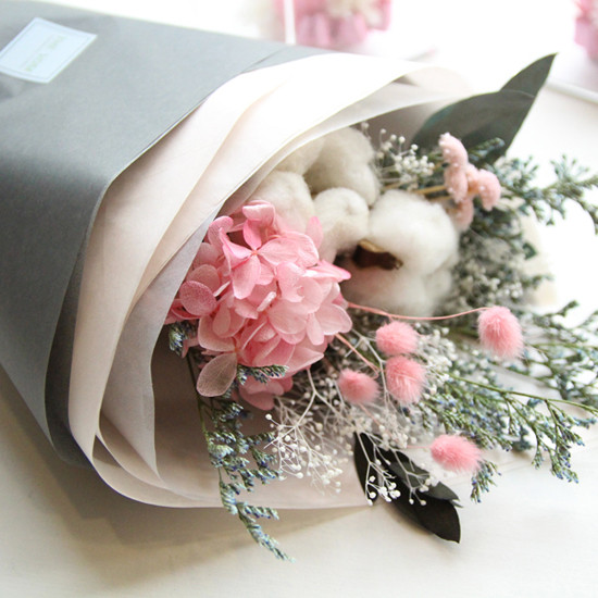 [더봄/프리저브드플라워] 목화와 핑크수국꽃다발
