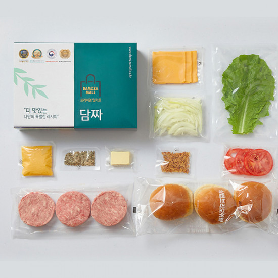 전체보기[담짜몰] 100% Beef 정통 미국식 수제 치즈 햄버거 밀키트(3인분/740g)