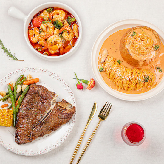 전체보기[담짜몰] 매운 감바스+매콤 빠네 파스타+마블킹 티본 스테이크 밀키트(4~5인분)